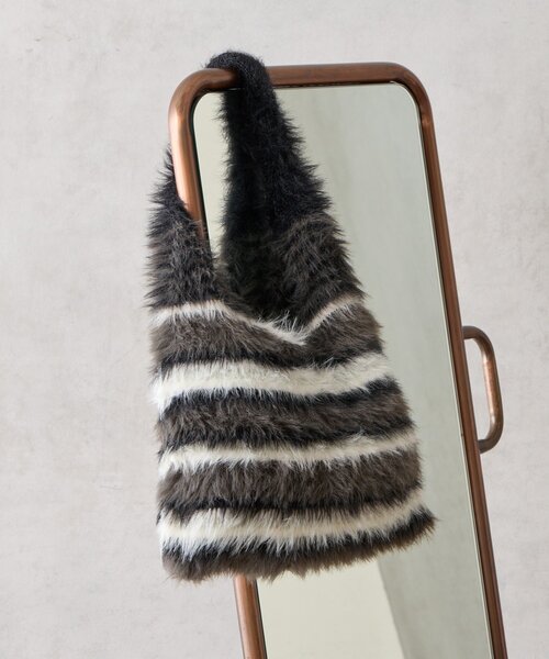 秋冬コーデにぴったり!ふわふわのファーバッグ 個性的なマルチボーダー柄が魅力のトートバッグ。 持つだけで季節感と華やかさをプラスしてくれます。 柔らかな手触りで見た目以上に軽量、普段使いにもおすすめ◎ 長財布、500mlボトルが縦横どちらの向きでもしっかり入る使いやすいサイズなので、普段使いはもちろん、特別な日にも活躍してくれるアイテムです。 〈商品詳細〉 ○ポケット:なし ○口元開閉方法:なし ○重量:160g 〈アテンション〉 ・素材特有のにおいがする場合がございます。においが気になる場合は一度陰干しをされた上でご使用ください。 【cache cache カシュカシュ】 カシュカシュとはフランス語で「かくれんぼ」。ガーリッシュとちょっと背伸びをした大人っぽさをミックスしたデイリーカジュアルなファッション小物を展開。カラフルで素朴なハンドクラフトやかわいらしいモチーフ使いで、洋服とのコーディネートに可愛らしさと遊びをプラスするバッグを提案。