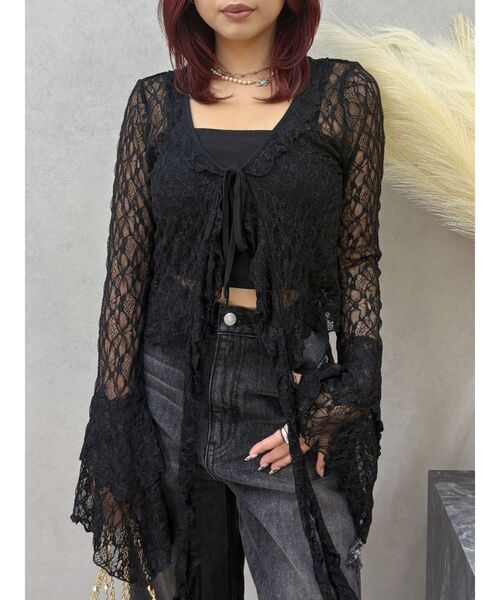 たっぷりのフリルがデザインがポイントのレーストップスです。総レースでゴージャスな印象があり、インナー使いや、1枚でトップスとしてもマルチに合わせやすいアイテムです。ボリューム感のあるアウターのインナーに合わせるのもオススメです。