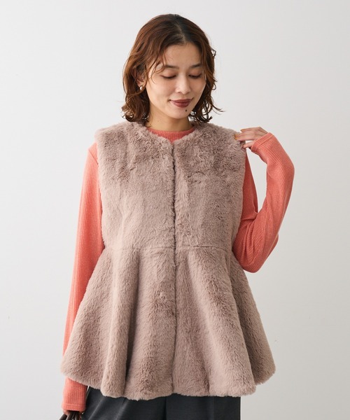 見た目にも心地よいふんわりテクスチャのフェイクファーベスト。ハイウエストに切り替えを施したフェミニンなペプラムフレアが魅力的なデザインです。フロントフック留めで楽に着脱出来、軽い着用感なのも嬉しいポイント。シンプルなハイネックトップやブラウスにオンするだけで季節感たっぷりに演出してくれる今季おすすめのアイテムです。透け感[なし]生地の厚さ[普通]光沢感[なし]伸縮性[ややあり]裏地[あり]ポケット[なし]※モデル着用画像は、光の当たり具合で色味が違って見える場合がございます。※お使いのモニター環境によって商品の色味が違って見える場合がございます。●Green Parks (fuuwa / topic / sara)●(グリーン パークス)20以上の人気ブランドを取り扱う、全国に約320店舗展開するアパレルセレクトショップ。ベーシックながらもさりげなくトレンドを取り入れたオリジナルブランドchocol raffine robeも展開。▼ 商品のお気に入り登録がおすすめです ▼商品ページ内のハートマークをクリック。完売時の再入荷や、最後の1点の通知、コーディネート画像がアップされたとき、お得なお値下げの際の通知を受ける事ができます。【お知らせ】ページでも通知が確認できます。