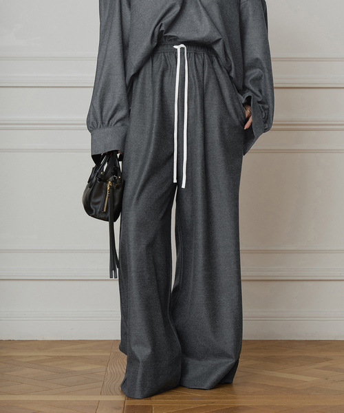 【2025AW】IENA LA BOUCLE艶やかに、心地よく。大人のウールイージーパンツ。ウールナイロンのジャージを特殊な編み機で布帛ライクに仕上げた、ハリとコンフォート感を併せ持った素材を使用。ストレートワイドなシルエットのイージーパンツはルーズに見えない美脚に拘った脚長パンツ。脇にパイピングを施しトラックパンツのようなディテールがアクセント。同素材のスキッパーシャツとのセットアップ合わせもおすすめです。※シリーズもございます。ウールジャージスキッパーシャツ(品番 25050914110040 )**********************透け感:なし裏地:なし伸縮性:ややあり光沢感:なし生地の厚さ:普通**********************※取り扱いについては、商品についている品質表示でご確認ください。※こちらの商品は、IENA LA BOUCLE(NEWoMan新宿店)でのお取扱いとなります。直接店舗へお問い合わせの際は、上記店舗へお願い致します。※照明の関係により、実際よりも色味が違って見える場合があります。またパソコン・スマートフォンなどの環境により、若干製品と画像のカラーが異なる場合もございます。※商品の色味は、商品アップ画像をご参照ください。ブラック着用スタッフ身長:160cm 着用サイズ:38グレーB着用スタッフ身長:157cm 着用サイズ:38詳細着用スタッフ身長:163cm 着用サイズ:38本体:ドライクリーニング