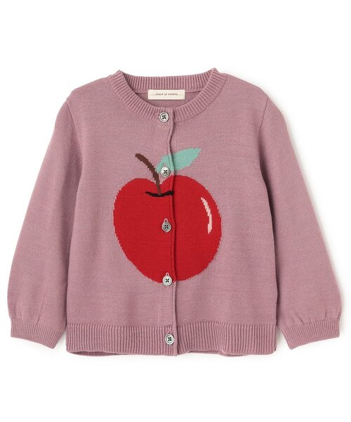 フロントにあしらった大きなリンゴのモチーフが目を引くカーディガンです。丸みを帯びたシルエットで愛らしい表情をプラス。落ち着いたカラーリングに仕上げており、デイリー使いに重宝します。シンプルなボトムやフレアスカートなどを合わせるのがおすすめです。内側にお名前を記入できるタグつき。【透け感】透けない【生地の厚さ】普通【伸縮性】あり【裏地】なし【ポケット】なし【アジャスター】なし