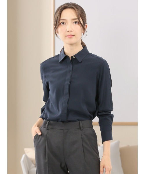 タカキューレディース/TAKA-Q:Women レーヨン混 レギュラーカラー 比翼長袖ブラウス■素材特徴さらりとしたレーヨン混の生地を使用しています。柔らかい風合いと、薄手で軽い着心地が魅力です。■機能【マシンウォッシャブル】洗濯機で洗えます。(要ネット・標準水流)■デザインシンプルなデザインで着回しやすい長袖ブラウスです。定番のレギュラーカラー、ボタンの隠れる比翼仕様、袖口のカーブカフスがポイント。■シルエット幅広い年代の方に着ていただけるベーシックなシルエットです。裾部分は丸みのあるラウンドヘムです。■コーディネートフロントインすると、程良い抜け感のあるこなれた印象に仕上がります。ジャケットインはもちろん、半袖ニットのインナーとしてもおすすめ。キチンと感があるので、毎日の通勤から普段使いまでオンオフ兼用で活躍してくれます。フィット感:標準シーズン:秋冬展開カラー:白(ホワイト)・こげ茶(ダークブラウン)・サックス・紺(ネイビー)*アテンションタグ・洗濯ネームを御確認の上、着用又は取り扱い下さい。*光の当たる場所や高温多湿になる場所での保管は避けて下さい。*使用の有無に関わらず、経年劣化は進行いたしますのでご了承下さい。*閲覧デバイス・環境により質感・色味に誤差が生じる場合がございます。* ZOZOTOWN お買い物ガイド・商品のお気に入り登録ハートマークをクリックしましょう!完売カラーの再入荷通知や、ラスト1点の通知、セールの通知をお知らせします。・ブランドのお気に入り登録新商品や再入荷など、いち早くお得な情報を受け取ることができます。・最短で翌日お届け商品をカートに入れた後、注文内容の確認ページで「即日配送」を選択していただければ、最短でご注文した翌日にお届け致します。(ZOZOTOWNお買いものガイドをご参照ください)冠婚葬祭 面接 フォーマル セミフォーマル セレモニー ビジネス オフィス 出張 営業 通勤 新生活 婚活 記念日 授業参観 参観日 母の日 敬老の日 プレゼント・ギフト ベーシック 定番 20代 30代 40代 アダルト シニア 等幅広いシーンやスタイルに活躍してくれます。