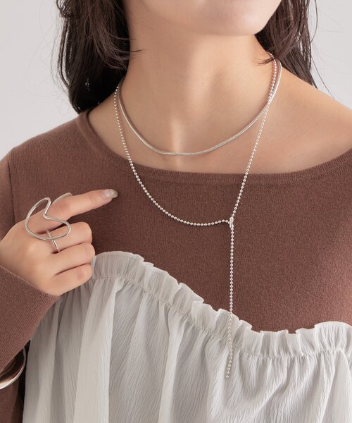 一つでレイヤードスタイルが完成するこなれ感たっぷりな2連チェーンネックレス●デザイン・長めのボールチェーンと上品なスネイクチェーンがバランス良く合わさったネックレス。・華奢なきらめきがデコルテを美しく見せ、顔周りをパッと明るく彩るアイテムです。・カジュアル使いからきれいめなスタイリングまで幅広く合わせていただけるネックレスです♩------------------------------------------------------商品のお気に入り登録➡ お気に入りアイテムの値下げ・再入荷・在庫1点などの通知を受け取ることができます。 ブランドのお気に入り登録➡ 新商品や再入荷、セール、クーポン配布などお得な情報を受け取ることができます。 ※サイト上のカラー名と、お届け商品に記載されているカラー名が異なる場合がございます。 ※商品の色味は、撮影場所や光のあたり具合などにより色味が違って見える場合が御座います 。 また、お客様のお使いのPCのモニター環境などにより色味が違って見える場合が御座います。予めご了承の上ご注文下さい。 ※ご注文いただいた予約商品のお届け時期の確認は、注文履歴ページより行えます。------------------------------------------------------