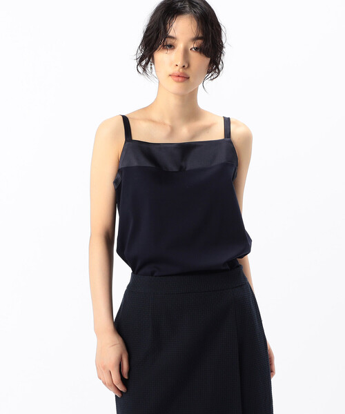 「サテン使いのおしゃれキャミソール」《デザイン》前後どちらでも着用ができる2WAY仕様のキャミソールです。肩ひもは少し太めにし、下着を隠す安心感がありながらも、 ぐるりサテン使いにし、上品な女性らしさをプラスしています。シャープできれい目に仕上げることで、ジャケットの下に着ても かっこよく決まるキャミソールです。前側は胸の上をサテンで切り替えたスクエアネックです。ストレートのラインがシャープな印象でありながら、サテンの光沢で華やかさをプラスしています。後側を前にした場合は高めの衿ぐりと 少しアメリカンスリーブ気味にくった脇線がモードな印象です。サテン面と合わせて、様々なアイテムの下に着られます。《素材》スーピマコットンの中でも最高級とされ、特に繊維が長く滑らかな質感が特徴の コーコランスーピマのみを使用したスムースです。高密度のシルケット加工を施すことで、糸の形状を滑らかに、毛羽を極限まで削ぎ落し、表面のシャープさと光沢、ドレープ性を実現し、上質さを感じられる素材です。別地は、華やかな光沢のあるストレッチサテンです。ストレッチ性が高く、着心地にも優れています。シルケット加工とは・・・シルクのような美しい光沢や風合いを生み、強度をはじめ寸法安定性、吸湿性、染色性を得るための加工のことお手入れ方法:手洗いOK《機能・特徴》前後2WAY