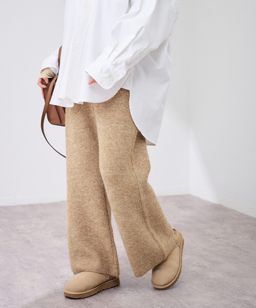 シーズンムードがぐっと高まるニットパンツ。ウールをブレンドした素材で秋口にちょうどいい軽やかさ。広がりすぎない自然なフレアシルエットが、大人の女性らしさを引き立てます。ゆったりとした大き目シャツなどと合わせたリラックススタイルがおすすめ。**********************透け感:なし裏地:なし伸縮性:あり光沢感:なし生地の厚さ:やや厚手**********************※取り扱いについては、商品についている品質表示でご確認ください。※こちらの商品は、FRAMeWORK での取り扱いになります。直接店舗へお問い合わせの際は FRAMeWORK 店舗へお願い致します。※照明の関係により、実際よりも色味が違って見える場合があります。またパソコン・スマートフォンなどの環境により、若干製品と画像のカラーが異なる場合もございます。予めご了承の上ご注文ください。※商品の色味は、商品アップ画像をご参照ください。本体:手洗い可能
