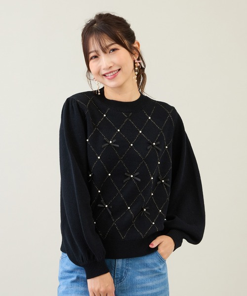 ・昨年大人気のニットが今シーズンバージョンで再登場・リボンをふんだんに散りばめたニットプルオーバー・ラメ糸を使用し、1枚で着映える存在感・クロスジャカードの部分にはリボン×パール調スタッズをあしらい華やかな印象に透け感: なし裏 地: 裏なしモデル身長: 166cm/ 38号着用詳細着用モデル身長 167cm / 着用サイズ 38号*取り扱いについては、商品についている品質表示でご確認ください。*撮影環境により、実際と色味が違って見える場合があります。また、PC・スマートフォンなどにより、製品と画像のカラーが異なる場合もございます。*商品画像はサンプルのため、色味やサイズ、プリント位置、仕様などに変更がある場合があります。*50号は一部の店舗・ONLINE SHOPのみの展開となります。取扱いしていないサイトもございますのでご了承ください。【RoseTiara/ローズティアラ】フェミニンな愛らしさと、大人のエレガンスを一度にまとう服。「可愛い」をずっと手放さない、あなたのためのブランドです。素材選びからデザイン、パターンまでを一貫して行い、タックの向きやギャザー分量、フリル位置などを36・38・40号と42・46・50号では調整し、パターンを分けることで美しいシルエットと着心地の良い服を提案します。