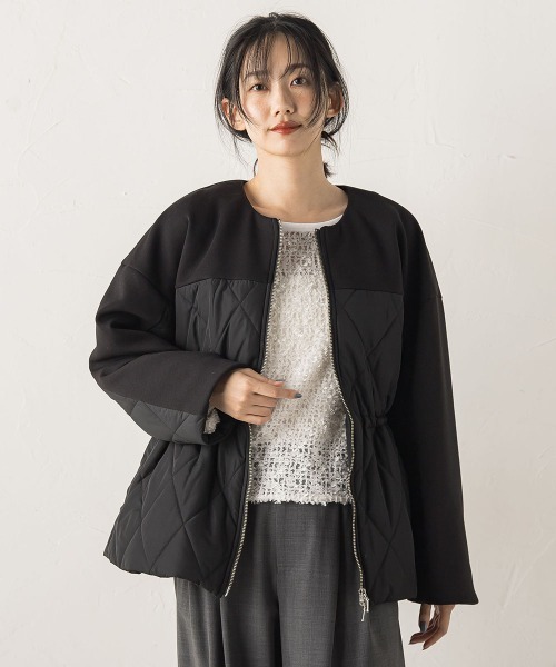 ダンボール素材×中綿キルティングの異素材ミックスジャケット。内側のドロストでウエストマークしたペプラムシルエットの着こなしが新鮮で、カジュアルな中にもほんのりフェミニンなスタイルが叶います。空気を含んだような軽い素材感で、 暖かさもありストレスフリーな着心地です。フロントのダブルジップも着こなしアレンジのポイントに。この時期から冬までデイリーに活躍してくれる1枚です。----------------------------------------------------------------洗濯方法家庭洗濯:家庭での洗濯禁止。アイロン:アイロン仕上げ禁止。ドライクリーニング:石油系溶剤による弱いドライクリーニングができる。----------------------------------------------------------------※画像の商品はサンプルとなりますので実際の商品と仕様、加工、サイズが若干異なる場合がございます。※お客様のモニター環境により実際のお色と多少異なる場合がございます。※撮影状況や光の当たり具合により、色合いが異なって見える場合がございます。※商品タグに記載されたサイズはヌードサイズです。実際の商品のサイズは商品情報の実寸をご確認ください。--------------------------------------------------------------------▼商品のお気に入り登録ハートマークをクリックし、お好きなカラーを選んでお気に入りに登録完売カラーの再入荷通知や、ラスト1点の通知、セールの通知も受け取ることができます。▼ブランドのお気に入り登録新商品や再入荷等、いち早くブランドのお得な情報を受け取ることができます。 --------------------------------------------------------------------