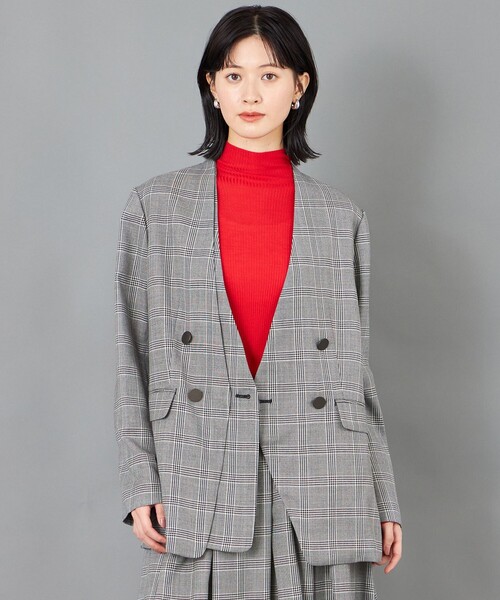 【CAST COLON 2025年秋冬アイテム】 【Design】 前立てが2枚重なったようなトロンプルイユデザインのチェック柄ジャケット。 袖や身頃はボクシーなシルエット、背中部分にはタックを入れているので、ゆったりしたストレスフリーな着心地。< 金属ボタンにすることで秋冬らしいモードな雰囲気に仕上げました。 【Fabric】 シャープな印象のチャック柄が特徴的な素材です。 2/48番手の原料を使用し、ほど良いハリコシのある素材に仕上げました。手洗いが可能なイージーケア性も魅力です。 【Styling】 同素材パンツ(N5R66654)のとセットアップはもちろん、ニットやブラウスとのコーディネートにも合わせやすいデザイン、素材です。 ●洗濯:手洗い可 透け感:なし 伸縮性:あり 生地の厚さ:普通 おすすめ着用期間:春、秋、冬 【CAST COLON】 CAST:より25年秋冬シーズンよりデビューした新ライン。コンセプトは"新しいワークウェア"。ファッション性と機能性を兼ね備えた、都会で暮らすハイセンスな女性に向けた仕事服。働く女性の毎日に必要なワードローブを、高感度×ストレスフリーな機能性で提案します。 ※この商品はサンプルでの撮影を行っています。 実際の商品とイメージ、サイズ、品質表示、原産国等が異なる場合がございます。 ※店頭及び屋外での撮影画像は、光の当たり具合で色味が違って見える場合があります。商品の色味は、スタジオ撮影の画像をご参照ください。