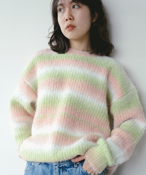 私だけの、特別ニット ■デザイン 鮮やかなグラデーションが目を引くニットは、1枚でコーディネートの主役に。色のグラデーションが立体感と奥行きを生み出し、華やかな印象をプラスします。 ■コーディネート ベーシックなボトムスと合わせるだけでおしゃれなスタイルが完成。デニムやスカートなどどんなアイテムとも相性が良く、着回しを楽しめます。 ■サイズ ゆとりのあるシルエットで、リラックス感があります。 ■素材 ふくらみのある柔らかい糸を使用。見た目のボリューム感に反してとても軽く着心地も抜群です。 【LIGHT GREEN】Model:H164 B76 W60 H89 Size:ONE SIZE 【BLUE・PURPLE】Model:H167 B81 W61 H87 Size:ONE SIZE ※光の当たり具合やパソコンなどの閲覧環境によって実際の色味と異なって見える場合がございます。予めご了承ください。 ※商品の色味は商品単体で撮影した画像をご参照ください。 ◆お気に入り登録のおすすめ◆ 気になる商品には「お気に入り」登録がおすすめです! 登録していただくと再入荷のお知らせやセール通知など、商品の最新情報が届きます。またマイページでいつでも確認が可能になります。 お得な情報が届くこともありますので、是非ご活用ください。