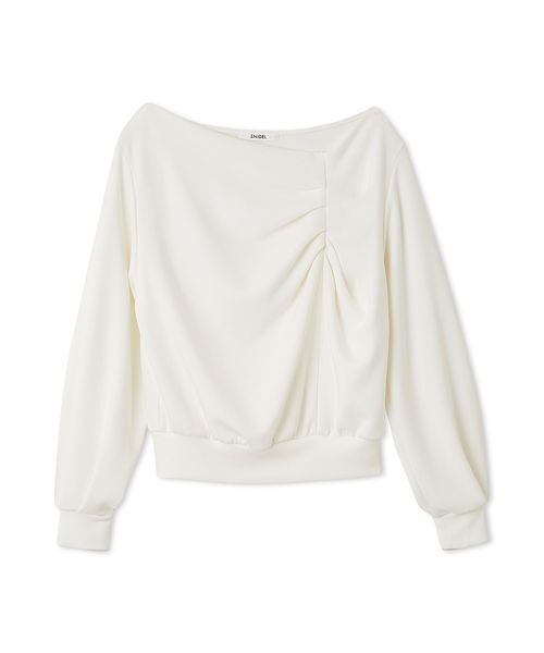 【ワンショルでも着られる、ドレープデザインが優雅な着心地の良いカットソートップス】【Design/Styling】胸元にアシンメトリーでタックディテールを加えてエレガントに仕上げた、カットソー素材のトップスが到着。左肩を落とし、ワンショルダーとしての着用も可能な2WAYです。リラクシーに着られるゆったりとしたサイズ感ですが、落ち感のある柔らかい素材を使用しているので、着ぶくれして見えないのもポイント。袖口もタックを入れてふんわりと仕上げ、フェミニンに仕上げました。表情豊かなファブリックイレヘムフレアスカート(SWFS254268)合わせがおすすめです。【Fabric】ホワイト、グレー、くすみ感のある大人な印象のミントの3色展開。グレーは杢調の生地でニュアンスを出しました。その他は無地です。ポリエステルレーヨンの肌触りの良いカットソー生地を使用しています。透け感;なし裏地;なし伸縮性;あり光沢感;なし生地の厚さ;普通【おすすめ骨格タイプ】■骨格ストレート■骨格ナチュラル ◆気になるアイテムはお気に入り登録がおすすめです。 お気に入り登録した商品はメニューの「♡」ボタンから、一覧表示することが出来ます。※照明の関係により、実際よりも色味が違って見える場合があります。またパソコン・スマートフォンなどの環境により、若干製品と画像のカラーが異なる場合もございます。予めご了承ください。商品の色味は、商品単品画像をご参照下さい。 ※商品画像はサンプルのため、色味やサイズ等の仕様に変更がある場合がございますので、予めご了承ください。