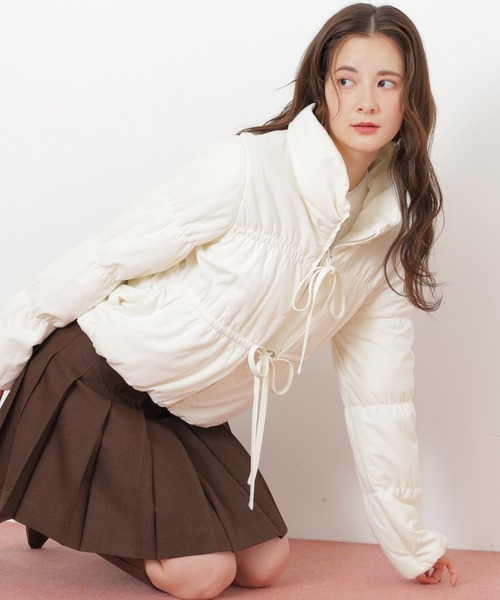 防寒性とデザイン性を兼ね備えた、冬のおしゃれアウターとして活躍してくれるブルゾン中綿入りで暖かさをしっかりキープしつつ、フロントリボンでガーリーなアクセントを加えたデザインです。コンパクトな丈感なのでスカートやワンピースとも相性バツグン。ウエストのリボンは調整できます。※撮影時照明の関係により、色味が違って見える場合がございます。またパソコン・スマートフォンなどの環境により、若干製品と画像のカラーが異なる場合もございます。予めご了承ください。商品の色味は、商品単品画像をご参照下さい。※商品画像はサンプルのため、色味やサイズ等の仕様に変更がある場合がございますので、予めご了承ください。◆お買い物をよりお楽しみいただくために◆・「商品のお気に入り登録」で完売カラーの再入荷やラスト1点、セール通知を受け取ることができます。・「ブランドのお気に入り登録」で新商品の入荷情報など、いち早く受け取ることができます。