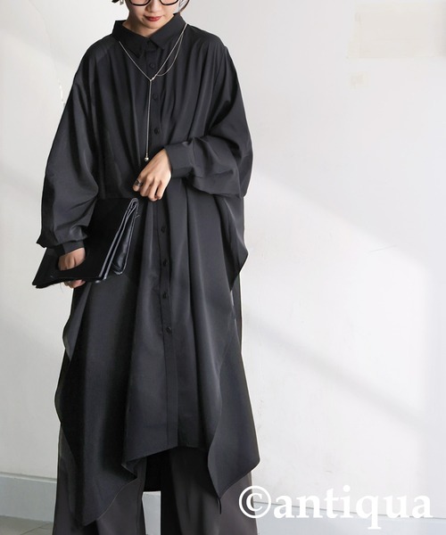 ネックラインをすっきり見せるシャツ襟(レギュラーカラー)が上品な印象を与えるドレープデザインのワンピースです。袖丈は手首が隠れる長袖で、袖口に施されたタックが自然な立体感と柔らかさを演出します。両サイドに深めのスリットが入ったロング丈の形状は、歩くたびに揺れる美しいドレープを生み、抜け感のある軽やかな装いに。背中には切り替えヨークとタックを施し、後ろ姿にも奥行きのある立体感をプラス。程よいハリ感と落ち感のある素材で、動くたびに表情が生まれる一着。一枚での着用はもちろん、前開きで羽織りとしても活躍し、体型カバー効果も抜群です。カラーは、ベージュ(薄茶・ベージュ・Beige)、ブラック(黒・くろ・Black)の2色展開。印象を変えて楽しめます。【♡マークを押して、お気に入り登録を!】『ラスト1点通知』、『再入荷通知』、『値下げ通知』など、お得な情報を受け取ることができます!!気になったアイテムは今すぐ ”お気に入り登録” をお忘れなく★★