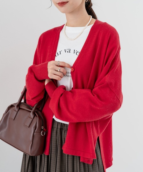 しっとりとした上品な質感のデイリーニットカーディガン 【羽織るだけで抜け感スタイル】 ■商品の特徴 ゆったりとしたシルエットで体型カバーも叶うカーディガン。 リラックス感がありながら、上品に見える万能アイテムです。 サイドスリットが入っており、さりげなく華奢見えしてくれるところも特徴。 ■詳細説明 軽やかな素材で、季節の変わり目にぴったり。 Vネックなので顔周りはすっきりと見せてくれます。 前を開けても閉じてもシルエットがきれいに決まります。 ■生地・素材感 …………………… 透け感:なし 伸縮性:あり 生地の厚さ:中肉 生地の柔らかさ:やわらかめ 裏地:なし ポケット:あり …………………… ■素材・混率情報 ………………… レーヨン46% ポリエステル30% ナイロン24% ………………… ■サイズ情報(cm) ………………… 身丈(前/後ろ):57cm/63cm 身幅:69cm 肩幅:72cm 天幅:13cm 袖丈:41cm 袖幅:18.5cm ………………… ■コーディネート ワイドパンツやタイトスカートなど、シンプルなアイテムと合わせるだけで旬のスタイリングが完成します。 シンプルなデザインなので柄物ボトムやデザイン系のアイテムと相性抜群です。 ■お気に入り登録 ★《お気に入り登録》でお得な情報がいっぱい★ ・「商品のお気に入り登録」で再入荷通知や、ラストの通知、セール通知も受け取ることができます ・「ブランドのお気に入り登録」で新商品や再入荷など、お得な情報を受け取ることができます! ※商品画像は撮影時の光や角度により、実物の色味と異なって見える場合がございます ※撮影はサンプル品を使用しており、表示のサイズ感も実物とは若干異なる場合もございますので、予めご了承ください ※生産時期により色・素材・サイズ感など多少異なる場合がございます。予めご了承ください ※他のキャンペーンにより、期間中に価格が変動する場合があります ※セールは予告なく終了させていただく場合もあります。