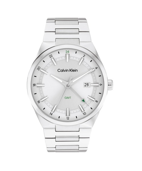デスティングイシュGMTは、GMT機能により2つのタイムゾーンを確認することができ、そのタフなプロダクトは旅行やビジネスの相棒として最適な選択となります。鮮やかな立体的な文字盤は高い視認性を持ちながらも、他人からも注目されるようなミニマルでエレガントさを持っています。一体型のHリングブレスレッドはフィット感とユニークさを両立させています。ケースサイズ:44mmケース厚み:10mmケース素材:ステンレスベルト素材:ステンレス防水性能:3気圧防水その他:日付表示・GMT付属品:Calvin Klein純正(BOX、保証書)保証について:2年(ムーブメント部分のみ)※メーカー保証書とは別に発行されるZOZOTOWN納品書は、お買上日を証明する書類として保証書と共に大切に保管してください。正規輸入品Calvin Klein(カルバンクライン)Calvin Klein(カルバン・クライン) は、世界的に認められた大胆で先進的な理想と官能的な美学を備えたファッション・ライフスタイルブランドです。カルバン・クラインのモダンでミニマルな美学はシーズンごとに新しく解釈され続け、力強いコミュニケーション力で世界的に大人気ブランドの地位を保ち、50 年以上にわたって世代を超えて共鳴してきました。1968 年にブランドと同名のCalvin Klein創立者によってアメリカのニューヨークで設立されたこのブランドは、日常の必需品を世界中の象徴的な地位にまで高めてきました。【お買い物をよりお楽しみいただくために】■お気に入り登録(ハートマークをクリック)完売商品の再入荷通知やラスト1点の通知、セールの通知を受け取ることができます。■ブランドのお気に入り登録新商品のUPや売り切れ商品の再入荷など、ブランドのお得な情報を受け取ることができます。