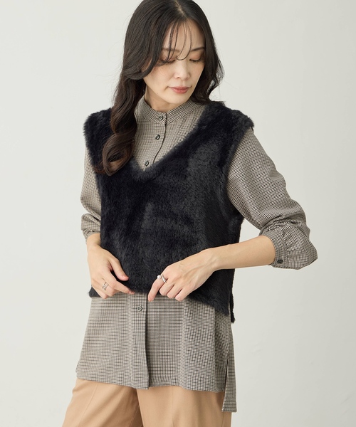 《レイヤードでロングシーズン楽しめるファーベスト》 毛足の長いファー素材で仕立てた、トレンドライクなベスト。 ふんわりと柔らかい手触りに、しっかりと暖かいのが魅力のひとつ。 薄手のシャツからハイネックのカットソーやニットまで、ロングシーズンでレイヤードスタイルを楽しめるアイテムです。 【デザインポイント】 ・ショート丈でバランスが取りやすく、脚を長く見せてくれます。 ・シャープなVネックラインで大人っぽくシンプルに仕上げました。 ・パンツスタイルはもちろん、スカートやワンピースとの合わせもおすすめ。 ----------商品情報---------- [着用目安]春先、秋、冬 [裏地]なし [透け感]なし [伸縮性]あり ---------------------------- 【サイズバリエーション】 ・Mサイズ(9号相当) ・Lサイズ(11号相当) 【着用シーン】 お呼ばれ、パーティー、食事会、同窓会、発表会、通勤、仕事、デイリー、ショッピング、女子会、旅行、行楽、お出かけ、ディナー、ランチ会、記念日、デート、学校行事、オフィスカジュアル 【ブランド紹介】 《A/C DESIGN BY ALPHA CUBIC(エーシーデザインバイアルファキュービック)》は通勤時やオフィスで、学校行事や“おうちの用事”などのオケージョンで、女性が気張らずに心地良くいるための服を提案するブランドです。 【お買い物をお得にもっと楽しんで頂くために】 ▼商品のお気に入り登録▼ 完売カラーの再入荷通知や、ラスト1点の通知、プライスダウンしたセール通知も受け取ることができます。 ▼ブランドのお気に入り登録▼ 新作や再入荷等、いち早くブランドのお得な情報を受け取ることができます!