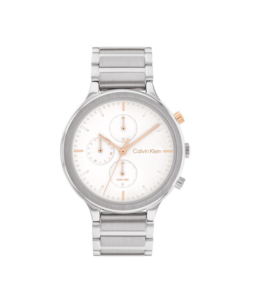 中心部には繊細なギョーシェ彫りが施されており、外周はシンプル、質感のコントラストが楽しめます。ケースサイズ:38mmケース素材:ステンレスベルト素材:ステンレス防水性能:3気圧防水その他:日付表示・マルチファンクション付属品:Calvin Klein純正(BOX、保証書)保証について:2年(ムーブメント部分のみ)※メーカー保証書とは別に発行されるZOZOTOWN納品書は、お買上日を証明する書類として保証書と共に大切に保管してください。Calvin Klein(カルバンクライン)Calvin Klein(カルバン・クライン) は、世界的に認められた大胆で先進的な理想と官能的な美学を備えたファッション・ライフスタイルブランドです。カルバン・クラインのモダンでミニマルな美学はシーズンごとに新しく解釈され続け、力強いコミュニケーション力で世界的に大人気ブランドの地位を保ち、50 年以上にわたって世代を超えて共鳴してきました。1968 年にブランドと同名のCalvin Klein創立者によってアメリカのニューヨークで設立されたこのブランドは、日常の必需品を世界中の象徴的な地位にまで高めてきました。