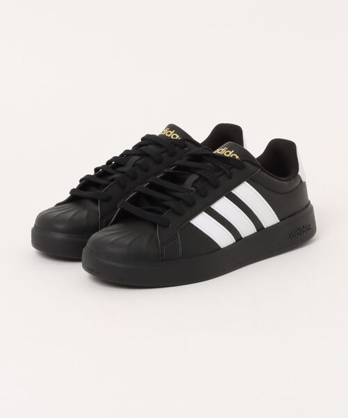 往年の名作シューズにインスパイアされたスタイルが、シンプルながら存在感を放つクリーンな一足。 アディダスのレガシーを受け継ぎ、大胆でありながらスポーツスタイルに溶け込むルックスを実現。 なめらかなシンセティックレザーアッパーは耐久性に優れ、ラバーカップソールとテクスチャード加工を施したシェルトゥキャップのディテールが、クラシックでありながらモダンなムードを演出します。 また、シュータンと履き口周りに採用したパッドが柔らかな足あたりを叶え、ラバーアウトソールが優れたグリップ力を発揮。 季節やコーディネートを選ばないタイムレスなデザインで、幅広いスタイリングにフィットします。 ◆◇◆気になる商品はお気に入り登録がオススメ◆◇◆ ▼商品のお気に入り登録 ♥マークをタップでセールの通知やラスト1点の通知、 完売商品の再入荷通知などお得な情報が受け取れます。 ▼ブランドのお気に入り登録 新商品や再入荷など、ブランドのお得な情報をいち早く受け取ることができます。 是非ご利用いただき、お買い物をお楽しみ下さい。 ※他のキャンペーンにより、期間中に価格が変動する場合があります。※セールは予告なく終了させていただく場合もあります。