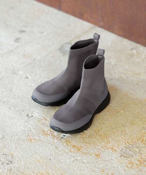雨の日もお洒落な足元に嬉しい機能が盛り沢山のニットブーツーーー【素材】甲材:ポリエステル/ポリウレタン底材:合成底【デザイン】ニットなのに水をはじきやす機能的なニットブーツ。雨の日も気軽にお使いいただけて、天気に左右されずに足元のお洒落も楽しめます。ベーシックなデザインなので、様々なコーデに取り入れやすいのもポイント◎【機能】・消臭・抗菌防臭機能のあるテープをつま先裏地に付随しております。・クッション性のあるスポンジを使用したインソールなので柔らかい足当たりです。・甲材とソールに柔らかい素材を使用し優しい履き心地です。・甲材に水をはじきやすい加工を施しています。(雨の中のご使用は縫い目等の部分から浸水することがあります。使用により徐々に効果がなくなります)ーーー【スタイリング】ボトムスを選ばず様々なコーデに合わせやすい一足。パンツ合わせのカジュアルな着こなしや、スカート・パンツ合わせの女性らしい着こなしがおすすめです。