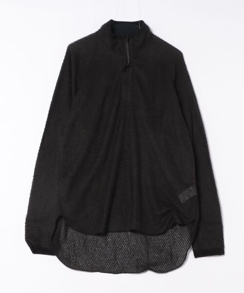 Product Twelve ラグランスリーブを採用し、袖下部分にマチを入れることで快適な腕の動きをサポート。 着用時のストレスを軽減するため、ハギ目の仕様はフラットシーマーを採用。着脱を行いやすいハーフジップ仕様。 Product Twelve デザイナー: Kawase Masaki コンセプト: Redesigning the Basics 2019年よりproduct almostblackをスタート 21AWより〈Product Twelve〉に改名 創造性によって、既存のべーシックを更新。 自身の誕生月である“12”は1年間を象徴する数字でもあり、その数字をブランド名に掲げることでタイムレスな物作りへの決意を込めている。
