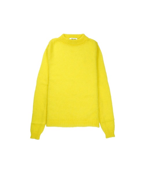 繊細な透け感が美しい、スーパーライトなニットトップ。 軽やかな編地が生み出すシアーな質感は、レイヤードスタイルに自由な発想をもたらす。 クルーネックとロングスリーブのミニマルなフォルムに、柔らかなニュアンスが漂う一枚。 単色で着ても、カラーを重ねても、スタイリング次第で印象が変わる、ユニークな存在感が魅力。 モードと遊び心が共存する、コレクションテーマを象徴するキーアイテム。 ・スーパーライトシアーニット(ウール・モヘア混) ・クルーネック ・ロングスリーブ ・シアー感のある編地・カラー:イエロー/ブラック/ライラック ・レギュラーフィット モデルサイズ:身長176cm バスト80cm ウエスト60cm ヒップ87cm 着用サイズ:S