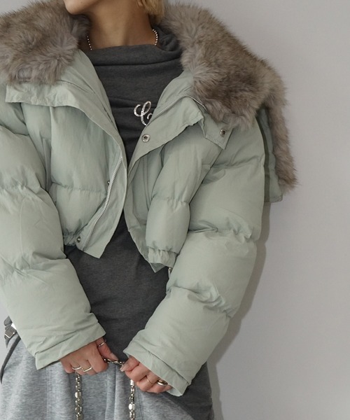 中綿入りのパッファー素材で仕立てた、コンパクトなショートジャケット セーラーカラー風のファー襟が顔まわりに華やかさを添え、程よいボリューム感で暖かく、1枚で着映える存在感。バックセンターのジップを閉めればフードとしても着用可能な2way仕様で、シーンや気分に合わせてアレンジが可能。 カジュアル感と上品さを両立させた、冬のデイリーコーデに活躍する一着。 詳細補足 仕様:フロントボタン・ファスナー / ポケットあり / 裾ドローコード / フードあり 伸縮性:なし 透け感:なし 光沢:なし 裏地:あり 厚さ:普通 サイズ感:通常 instagram→chuclla_official 取扱注意事項 ※サイズは、測定方法と測定者によって多少の誤差がありますのでご了承下さいませ。 また体型によって、サイズ感に個人差がございます。(平置き採寸) ※商品によってはシワがつきやすく、畳みジワや折りジワなどが強く出る場合がございます。 その際は加湿した風呂場に数時間干すか、スチームアイロンでのお手入れをお勧めしております。 ※生地の素材上、においが気になる場合がございます。 その際は陰干しして頂くと、ほとんど感じにくくなります。 ※レース等の繊細な素材を使用している場合には、お取り扱いにご注意下さい。 ※デニムを使用した製品は、インディゴ染めをしています。 汗や摩擦により移染しやすいので、白色、淡色の組み合わせや重ね着はお避け下さい。 ※ニット素材を使用した製品は、重みで伸びやすくなりますのでハンガーでの保管はお控えください。 ※お洗濯の際には、品質表示の指示に従ってください。必要であれば専門店にご相談ください。 家庭でご洗濯できる商品に関しては、洗濯専用ネットをご使用の上、個別での洗濯をお勧めいたします。 お色物は、色移りする可能性がございます。 ※着用画像は撮影状況や光によって、多少異なる場合がございますので、置き画像をご確認下さい。 ※2023年7月1日より、環境に配慮した取り組みの一環として、紙のアテンションタグを廃止しております。