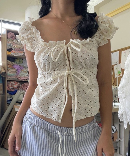 """【MEMECLE】レーススクエアネック リボンブラウスガーリーさとカジュアルさを兼ね備えた半袖ブラウス♡ ■ポイント・裾のレースラインと胸元のリボンがほんのりとガーリーさをプラスしてくれて、 ネックラインがデコルテラインを美しく見せてくれます◎・程よい透け感のある生地感がフェミニンな印象に♡ ■コーディネート太めのデニムや、ストライプの夏らしいパンツとの相性が抜群です♡トレンドのバルーンスカートと合わせるのもおすすめです◎ ブラウス カジュアル 韓国 【MEMECLE】韓国ストリートを中心にY2K、スポーティなどのトレンドミックススタイルをもとに、""""これ一枚でも可愛く""""をコンセプトにセレクトしたブランド。 ※モニター・環境等により実際の商品と多少色味が異なって見える場合がございます。あらかじめご了承ください。 【MEMECLEでお買い物をよりお楽しみいただくために】●商品のお気に入り登録完売カラーの再入荷や、ラスト1点のお知らせ、セール情報などの通知を受け取ることができます。●ブランドのお気に入り登録新商品や再入荷など、お得な情報をいち早く受け取ることができます。"""" CZ_0002"""