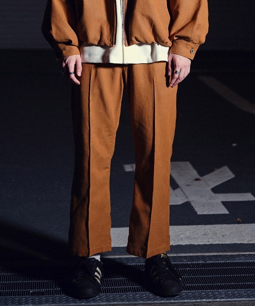 一見すると無骨なワークパンツで使用されているガチガチのダック生地に見えるのですが、リヨセルを組み合わせる事でダック素材なのにオチ感の有るビンテージの様な風合いを持つ生地で制作したハンパ丈のブーツカットパンツです。無骨なダック生地では出せないオチ感やスッキリしたシルエットは今までのカテゴリーには属さないワークパンツ風スラックスです。ワークパンツのカジュアルな雰囲気はそのままに、『着やすさ』と『上品さ』そして『中性的な雰囲気』まで醸し出す、まさにジェンダーレスなアイテムです。フロントセンターのピンタックが綺麗なシルエットを演出してくれます。*皮パッチは某ワークブランドのオマージュです。*MK26S-O-08 CHICAGO-JKとセットアップで着用出来ます。*NEAT SIZE=きっちりしたサイズ感です。ターゲットは小柄で細めの男性・スッキリ着用したい男性・ゆるっと着用したい女性*RELAX SIZE=ゆったりとしたオーバーサイズです。ターゲットはゆったりリラックス感のあるオーバーサイズで着用したい方日本人男性モデル(身長174cm) CAM/size NEAT 着用日本人男性モデル(身長185cm) BLK/size RELAX 着用日本人男性モデル(身長172cm) CAM+BLK/size RELAX 着用、CAM/size NEAT 着用日本人女性モデル(身長157cm) CAM/size NEAT 着用外国人女性モデル(身長173cm) CAM/size NEAT 着用外国人男性モデル(身長182cm) CAM/size RELAX 着用外国人男性モデル(身長181cm) BLK/size RELAX 着用