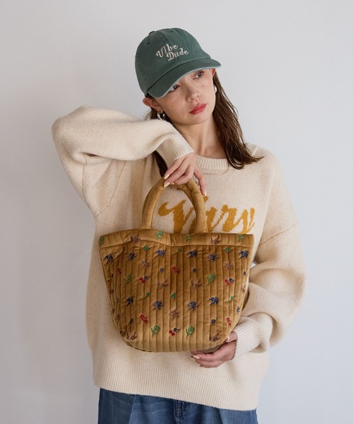 ーーーオリジナル刺繍を施した冬らしいベロアのトートバッグ。カラフルな刺繍と裏地の配色デザインがポイント。マチ付きでしっかりと収納力できるサイズ感です。ーーー※この商品は、インドで素材調達、縫製を行っています。素材の特性上、多少の色差、織ムラ、フシなどがあります。摩擦により色落ちの恐れがありますのでお取り扱いにはご注意ください。※屋外での撮影画像は光の加減で実際の商品より明るく見えたり、風合いが異なって見える場合がございます。商品の色味はスタジオ撮影の画像を参考にして下さい。-------------------------------------≪お買い物をよりお楽しみいただくために≫◆商品のお気に入り登録(ハートマークをクリック)完売カラーの再入荷通知や、完売間近の通知、セールの通知も受けることができます。◆ブランドのお気に入り登録新商品や再入荷など、いち早くブランドのお得な情報を受け取ることができます。-------------------------------------