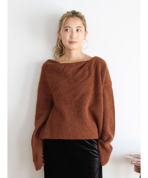 首元にタックをよせてドレープ感のあるディティールがポイントのニット ■デザイン ボートネックで肩に少しゴムをいれているので、ワンショルダーにして着たときもズレ落ちにくい仕様にしています。 1枚でオシャレ見えするアイテム。 ■生地感 もちっとした風合いでやや起毛感のある糸です。 ■サイズ感 ほどよくゆとりのあるサイズ感。 大きすぎないゆるさがヘルシーでかわいいサイズ感です。 ■スタイリング ラフパンツで抜け感のあるスタイリングや、アイラインスカートでレディライクなスタイリングが今季らしくおすすめです。 ・・・・・・・・・・・・・・・・・・・・・・ 透け感:なし 裏地:なし 伸縮性:あり 光沢感:なし 生地の厚さ:普通 ・・・・・・・・・・・・・・・・・・・・・・ ※商品画像はサンプルのため、色味やサイズ、素材の混率等の仕様に 変更がある場合がございます。予めご了承ください。 ※生地寄り画像を正規の商品の色味に近づけております。 ■商品のお気に入り登録 再入荷通知やラスト1点、お得なプライスダウンの情報も受け取ることができます。 ぜひご登録ください◎