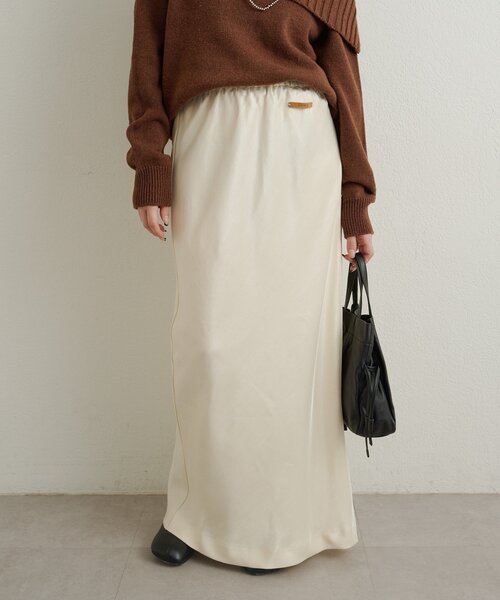 人気のサテンスカートがアップデートして新登場! ・"Dewy"タグがポイントのサテンイージースカート。 ・美脚効果を演出するIラインシルエット。ピタッとしすぎず、程よいタイト感がデイリー使いしやすい一枚。 ・ウエストはゴム仕様でファスナーも付いているので着脱も楽で、幅広い体系の方にリラックスして穿いていただけます。 ・着回しが効く定番カラーのオフホワイトとブラックに加え、履くだけでコーディネートのポイントになるピンクの三色展開です。 ・透け感:オフホワイトのみややあり ・裏地:なし ・伸縮性:なし ・生地の厚さ:普通 ・光沢:あり ・ポケット:なし <洗濯方法>手洗い可能 -------------------------------------- 【商品のお気に入り登録】 ♡をクリックで気になるアイテムをお気に入り登録していただくと、 以下の通知を受け取ることができます。 ・入荷 ・再入荷 ・ラスト一点 ・セール対象時 【ブランドのお気に入り登録 】 新商品や再入荷、セール、クーポン配布などお得な情報を受け取ることができます。 -------------------------------------- ※画像の商品はサンプルです。実際の商品と仕様、加工が若干異なる場合があります。 ※カラーにより糸の風合いが異なるため、個体差が生じる場合がございます。 ※商品の色味は、撮影場所や光の当たり具合などにより色味が異なって見える場合がございます。 また、お客様のお使いのPC・スマートフォン等のモニター環境などにより色味が異なって見える場合がございます。予めご了承の上ご注文ください。