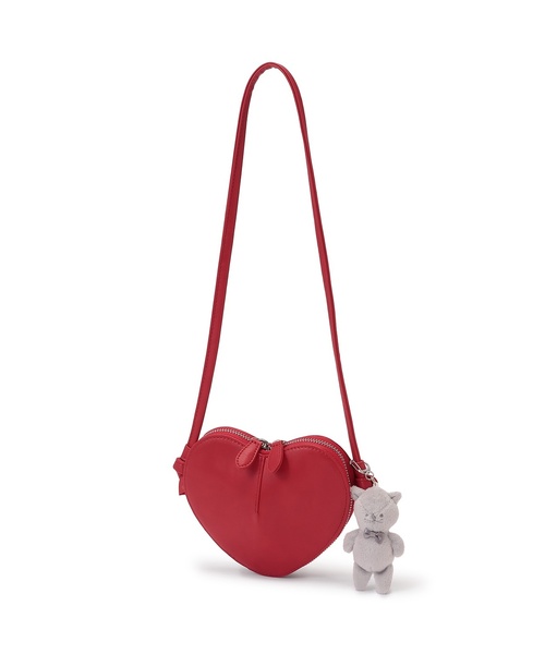 コーディネートのワンポイントとなるハート型のポシェットです。愛らしいアニマルのぬいぐるみチャームがついています。チャームにはナスカンを備えており、ポーチやベルトループに合わせるのもおすすめ。コンパクトなサイズ感で、ちょっとしたお出かけもおしゃれに魅せてくれるアイテムです。内側にお名前を記入できるタグつき。