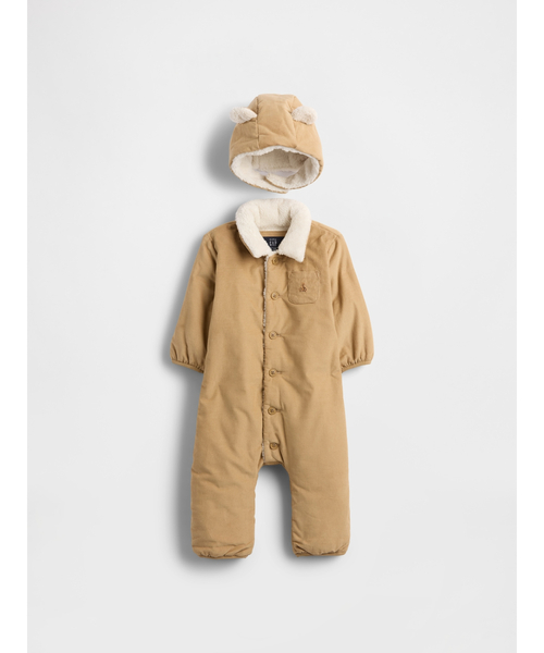 優しく心地良い肌触りのあったか裏ボアコットンコーデュロイ生地で作られたカバーオールと帽子のセット襟ボア、スプレッドカラー長袖フロントボタン胸パッチポケットにブラナンベア刺しゅうのディテール袖口ゴム着せ替えやおむつ替えをラクにしてくれる股下スナップボタン身頃と帽子に裏ボアおそろいの帽子にあごストラップとボアのくま耳付きこの商品は、RISE (Reimagining Industry to Support Equality) を通じてジェンダー平等と女性のエンパワーメントを精力的に推進する工場で生産されています。-*商品タグに記載の価格とサイト上の販売価格が異なる事があります。【Gap ギャップ】1969年にアメリカ・サンフランシスコで創業以来、世界的なカジュアルファッションブランドとして、常にモダンなアメリカンカジュアルを提案し続けています。※商品画像は、光の当たり具合やパソコンなどの閲覧環境により、実際の色味と異なって見える場合がございます。予めご了承ください。