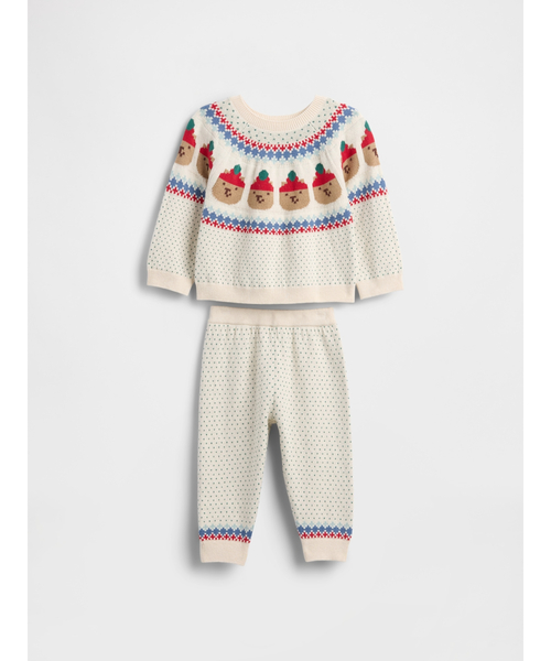 優しく心地良い肌触りのコットンニットセーターとプルオンニットパンツのセット クルーネック 長袖 セーターにホリデーシーズンにぴったりのブラナンベアのフェアアイルデザイン ウエストゴム仕様のパンツ 全体にプリント入り 袖口リブ、裾リブ *商品タグに記載の価格とサイト上の販売価格が異なる事があります。 【Gap ギャップ】1969年にアメリカ・サンフランシスコで創業以来、世界的なカジュアルファッションブランドとして、常にモダンなアメリカンカジュアルを提案し続けています。 ※商品画像は、光の当たり具合やパソコンなどの閲覧環境により、実際の色味と異なって見える場合がございます。予めご了承ください。