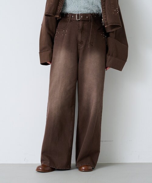 デイリーに使える、ほんのり華やぎデニム※サイズ0と1のパンツ丈の差は6cmです。(詳しくはサイズ詳細をご覧ください)■デザインウエスト周りにビジューをあしらったデニムパンツ。シンプルながらも煌めきがアクセントになり、カジュアルコーデに華やぎをプラスします。程よいワイドシルエットで体型カバーも叶えつつ、スタイルアップ効果も◎。■生地感しっかりとしたデニム生地で、適度な厚みとハリ感がありオールシーズン着用可能。柔らかさもあり穿き心地は快適です。■コーディネートシンプルなリブニットやTシャツと合わせて、ビジューを主役にしたスタイリング。クロップド丈トップスやジャケットでモードに。足元はヒールブーツやローファーで大人っぽく、スニーカーでカジュアルダウンもおすすめ。同素材のジャケットとセットアップで合わせても◎。■素材・洗濯表示素材:【ブラウン】綿98%,レーヨン2%【インディゴ・ブラック】綿100%洗濯:手洗いまたは洗濯ネットに入れ洗濯機の手洗いコースで洗濯可能タンブル乾燥:不可アイロン:160℃まで※デニム生地は摩擦や水、洗濯で色落ちする可能性がございます。お取り扱いにはご注意ください。※汗や水、摩擦により他のものに色移りすることがありますのでご注意ください。▼セットアップ商品ビジューデニムジャケット【KAZ1052207A0009】※サイズ採寸は各モールによって異なり、多少の誤差が生じる可能性がありますのでご了承ください。※商品画像はサンプル品を使用しているため、実際の商品と仕様、加工、サイズが若干異なる場合がございます。また、可能な限り実物に近いカラーにて掲載していますが、使用しているパソコンのモニター設定や、携帯電話のメーカー・機種により実際のカラーと異なって見える場合がございます。予めご了承ください。▼商品のお気に入り登録ハートマークをクリックし、お好きなカラーを選んでお気に入りに登録完売カラーの再入荷通知や、ラスト1点の通知、セールの通知も受け取ることができます。▼ブランドのお気に入り登録新商品や再入荷等、いち早くブランドのお得な情報を受け取ることができます。<返品・キャンセルについて>・着用・洗濯後の返品・ご交換は致しかねます。・商品到着後、着用前に商品を確認して頂きますようお願い致します。