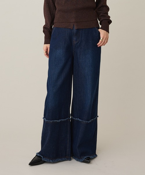*さりげないデザインで差がつくロールアップ風デニムパンツ。「立体感のある切り替えデザインがポイント」11オンスのデニム素材を使用し、程よくハリ感のある仕上がりに。フロントからバックまで続く切り替えラインを施すことで、脚のラインをすっきりと見せてくれます。ウエストは後ろゴム仕様で、腰まわりを包み込むような安心感のある穿き心地です。「ロールアップ風のステッチでこなれた印象に」裾に施した切り替えステッチが、ロールアップしているように見えるデザイン。さりげないアクセントになり、シンプルなトップスを合わせるだけでトレンド感のあるスタイリングが完成します。「美脚見えを叶えるストレートシルエット」まっすぐに落ちるラインで脚のラインを拾いにくく、バランスよく見せてくれるストレートシルエット。ヒールやフラットシューズなど、足元を選ばず合わせやすいのも嬉しいポイントです。「着回しやすい2色展開」カラーはインディゴ、ブラック2色展開。どちらも程よく落ち着いた色味で、カジュアルにもきれいめにもマッチします。綿・レーヨン混の柔らかさと再生繊維のナチュラルな風合いを活かしたデニムパンツ。日常使いしやすいデザインながら、ディテールでさりげなく差がつく一本です。透け感[なし]生地の厚さ[普通]光沢感[なし]伸縮性[なし]裏地[なし]ポケット[あり]※モデル着用画像は、光の当たり具合で色味が違って見える場合がございます。※お使いのモニター環境によって商品の色味が違って見える場合がございます。 ̄ ̄ ̄ ̄ ̄ ̄ ̄ ̄ ̄ ̄ ̄ ̄ ̄ ̄ ̄ ̄ ̄ ̄ ̄▼商品のお気に入り登録がおすすめです ▼商品ページ内のハートマークをクリック。完売時の再入荷や、最後の1点の通知、最後の1点など、お得なお値下げ情報を受けとる事ができます。【お知らせ】ページでも通知が確認できます。 ̄ ̄ ̄ ̄ ̄ ̄ ̄ ̄ ̄ ̄ ̄ ̄ ̄ ̄ ̄ ̄ ̄ ̄ ̄