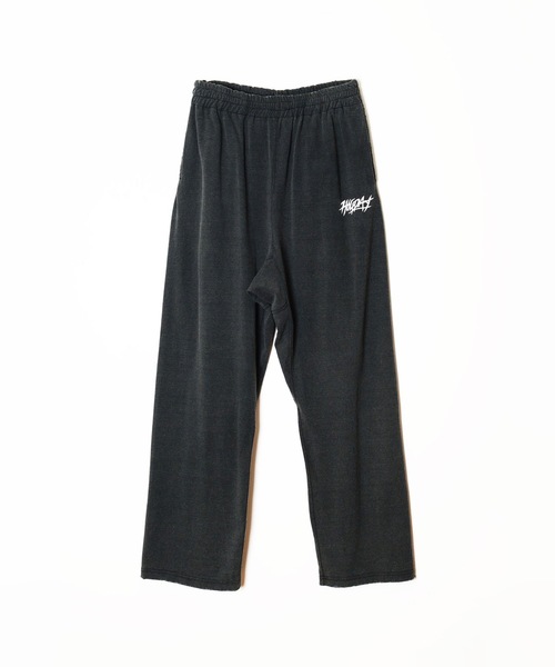 ヘビーオンスでドライな質感が特徴の【SUPER FINE DRY】ハイウエストワイドパンツ。ヴィンテージのような風合いを出すため細部までこだわったダメージ加工を施しています。サイドポケット付き。ロゴプリント入り。【ragelow】イラストレーターでありペインター。旅をしながら制作した作品を自身のインスタグラムや“DAILY WORKERS”というサイトで紹介しています。今期の絵のモチーフはカラスとカセットレコーダーです。【HOLIDAY SUPER FINE DRY】 HOLIDAYオリジナルのカットソー素材SUPER FINE DRYシリーズはUSメイドのドライな質感且つヘビーオンスでタフなTシャツをイメージ。国産の17単BD天竺に特殊な加工をすることにより肉厚でドライな質感の中にも肌触りの良さを表現しています。縫製前の生地にハードウォッシュ加工と高温乾燥をかけ、Tシャツになった後もう一度ハードウォッシュ加工と高温乾燥をかけることによりプリントもよくなじみ新品のTシャツにはない風合いに仕上げています。※仕上げに高温乾燥をかけている都合で着丈や袖丈に個体差が生じることがございます。※全てハンドでダメージ加工を施しているため加工の仕上がりに個体差が生じます。