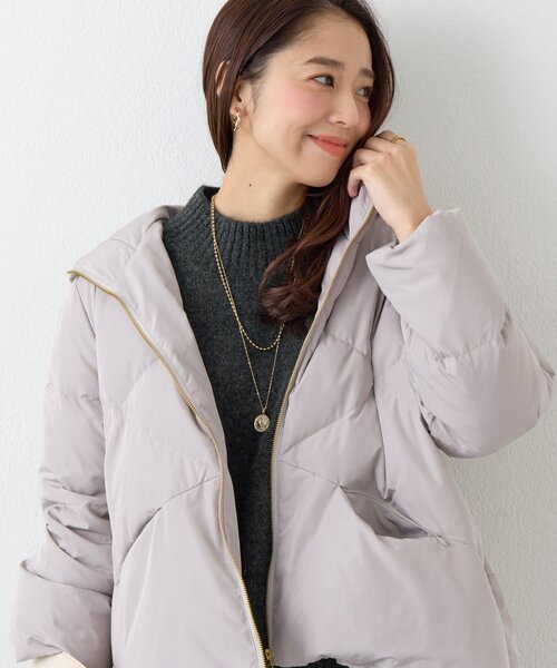 ふんわり暖か、こなれ感をプラスするダウン商品ポイント・秋冬の装いを軽やかにアップデートしてくれる、フード付きショートダウンジャケットが登場。・カジュアルながらも上品な印象を与え、普段のコーディネートをワンランクアップさせてくれます。・ふんわりとした優しい肌触りの素材感で軽やかに羽織ることができ、寒い季節も快適に過ごせます。おすすめコーディネートスタイルアップ効果も期待できるショート丈は、ボトムス選ばずマッチします。シンプルなデザインなので、どんなスタイリングにも合わせやすいのが魅力です。素材表地:ポリエステル100%裏地:ポリエステル100%詰物:ダウン50%フェザー50%洗濯方法:洗い不可透け感:なし裏地:あり伸縮性:なし生地の厚さ:やや厚め光沢:なしポケット:あり--------------------------------------------------------------------------------【注意点】※画像の商品は光の照射や角度、お使いのモニター環境により、実物と色味が異なる場合がございます。※入荷状況により、お届け予定が前後する場合があります。※工場の生産の都合上、納期が変更になる場合がございます。検品や輸送の関係で、発送日が前後しますのでご了承ください。 また、入荷状況により、お客様への発送が店頭販売より遅れる場合もございます。※追加生産商品は、一部の店舗、通販で販売中の場合がございます。予めご了承下さい。※サンプルでの撮影、計測をしております。商品の仕様が一部変更になる場合がございます。※撮影サンプル品はブランドタグがついておりません。製品にはタグがつきますので、製品の表に縫い糸が見える場合がございます。--------------------------------------------------------------------------------【お買い物をもっと便利に楽しく♪】『ハート』をクリックでお気に入り登録〇「商品のお気に入り登録」で・・・ ラスト1点や再入荷の通知が届きます。登録して頂いた商品だけが対象となる、あなただけのタイムセールが開催されることも!〇「ブランドのお気に入り登録」で・・・ 新商品や再入荷など、いち早くブランドのお得な情報を受け取ることができますので、ご登録をおすすめします!--------------------------------------------------------------------------------