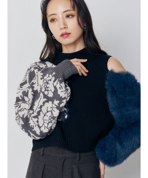 昨年大人気のニットが新色を加えて再登場!MURUAらしい異素材の配色デザインがポイント■アイテムMURUAらしいエッジの効いたアシンメトリーデザインのトップス。 肩開きや、柄、素材違いのバイカラー等こだわりの詰まったアイテム。右袖はフラワー柄をジャガードで表現し、トレンド感のある太いステッチディティールを入れてインパクトも◎シャギーニットの左袖はさりげない肩開きのヘルシーな肌見せ仕様に。袖と身頃でそれぞれ編地やカラーを変えエッジを効かせたMURUAにしかいないデザイン性のある主役ニットなので、ボトムはシンプルなアイテムがおすすめです。--------------------------------------------生地の厚さ:普通 伸縮性:あり透け感:なし サイズ感:普通--------------------------------------------【知って得する便利機能◎ 】■商品のお気に入り登録再入荷時、ラスト1点の時にお知らせします。■ブランドのお気に入り登録新商品やお得な情報など、いち早くお得な情報をゲット!ぜひご活用ください!※着用画像はフラッシュの加減で実際の製品と色味等が異なる場合がございますので、生地のズームアップ画像をご確認ください。※ご利用の端末画面の設定により実際の商品と色味が異なる場合がございます。