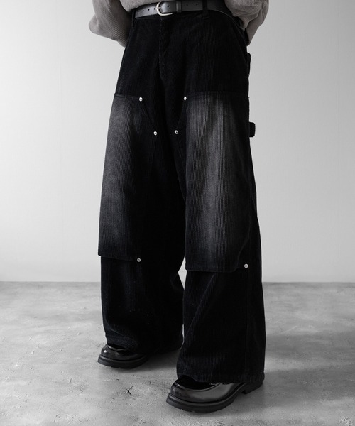 -【RUUBON】New Item Release – 《ディテールで魅せる、存在感抜群のダブルニーワイドパンツ》 ワークディテールをRUUBONらしく再解釈した存在感抜群のダブルニーワイドパンツ。 フロントに施した加工とメタルリベットやタック釦、さらに脇身頃の共布タブなど、 細部にまでこだわったディテールで、他にはない個性を演出しています。 ワイドシルエットとダブルニー仕様がワーク感を強調し、シンプルなトップスと合わせるだけでもスタイリングが完成。 バックウエストにはゴムを採用し、快適なフィット感を実現。 ポケットはサイドスラッシュ2箇所、バック2箇所、右バック下に小物ポケットを備えた計5ポケット仕様で、機能性も抜群。 デザイン性と利便性を兼備した、RUUBONならではの一本です。 《タフで都会的。温もりと快適さを両立する冬素材》 綿100%のコーデュロイ素材を使用。 しっかりとした肉感と立体感のある畝が特徴で、独特の存在感を放ちます。 さらに加工を施すことで、ユーズドライクな色褪せや自然なアタリを表現し、ヴィンテージ感のある仕上がりに。 カラーは、どんなスタイリングにも取り入れやすいBLACKと、秋冬シーズンらしい温かみを感じさせるBROWNの2色を展開。 附属パーツは両カラー共にメタルシルバーで統一し、シャープなアクセントを添えています。 《ワークもモードも、自在に操る。》 存在感抜群のダブルニーワイドパンツは、合わせるアイテム次第で印象を自在に変化できます。 無地のカットソーやスウェットをタックインして合わせるだけで、パンツのディテールが主役に。 スニーカーを合わせれば、ストリートライクな今っぽい着こなしに仕上がります。 カーキやオリーブのシャツジャケット、ミリタリーコートと合わせれば、ワーク感を前面に押し出したスタイルが完成。 ブーツを合わせるとさらに無骨な雰囲気に。 ブラックのモード系アウターやレザーアイテムと合わせれば、ワークディテールを都会的に昇華。 足元はレザーシューズやボリュームスニーカーで大人っぽくまとめるのもおすすめ。 【ご使用上のお願い】 ・この製品は素材の特性上、着用中の摩擦や、雨や汗などで濡れた状態での摩擦で色落ちしたり、他の衣類、淡い色のベルトやバッグ、ソファー等に色移りしますので十分にご注意ください。 ・下着等は同系色のものを着用されることをおすすめします。 ・色落ち、色移りしますので、他の物と一緒に洗わないで下さい。 ・独特な風合いを表現するため、製品洗い・特殊加工をしております。そのため、一点一点サイズ感や単一製品の中でも部位によって色目や加工感が多少異なります。 ・洗濯時、ネットを使用してください。 ・形を整えてから干してください。 ・塩素系、酸素系の漂白剤は使用しないでください。 ・色落ちしますから他の物と分けて洗って下さい。 ・つけ置き洗い、濡れたままの放置は避けてください。 ・アイロン時はあて布をして下さい。 ・摩擦(特に湿った状態での摩擦)や雨・汗などで、他の衣料やバッグ等の周りのものに色移りすることがありますのでご注意ください。 【 RUUBON/ルーボン 】 素朴で飽きのこないデザインと体型問わず着やすいシルエットを追求。 日常にさりげない幸せをもたらすユニセックスブランド。 ▼商品のお気に入り登録 完売カラーの再入荷通知や、ラスト1点、セールの通知をお知らせいたします。 ▼ブランドお気に入り登録 新商品や再入荷など、いち早くブランドの情報を受け取ることができます。