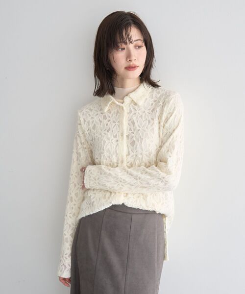 起毛感のあるフラワーレースが魅力的なシャツ。ニット地のようなソフトで柔らかな肌触りとほんのり透け感を魅せる上品な雰囲気がポイントです。ふんわりとした甘さがありながら、襟付きできちんと感もプラス。すっきりとしたシルエットで、ジャケットのインナーとしても活躍するアイテムです。透け感[あり]生地の厚さ[薄手]光沢感[なし]伸縮性[あり]裏地[なし]ポケット[なし]<同素材アイテム> フラワー起毛レースマーメイドスカート(07001008700)※モデル着用画像は、光の当たり具合で色味が違って見える場合がございます。※お使いのモニター環境によって商品の色味が違って見える場合がございます。------------------------------------------●YECCA VECCA●(イェッカ ヴェッカ)「大人のハッピーモードな着映え服」毎日を自分らしく、ハッピーに過ごすことにポジティブな女性のためのリアルクローズ。キーワードは「遊び心のある、女性らしいモード服」でも「コンフォート」。都会的で女性らしいムードを大切に着ていて心地よく、気持ちが上向きになるような遊び心のあるデザインウェアをラインナップ。自分自身がわくわく出来る洋服で日常を最大限に楽しむ大人の為のスタイルを提案していきます。▼商品のお気に入り登録がおすすめです ▼商品ページ内のハートマークをクリック。完売時の再入荷や、最後の1点の通知、コーディネート画像がアップされたとき、お得なお値下げの際の通知を受ける事ができます。【お知らせ】ページでも通知が確認できます。-------------------------------------------