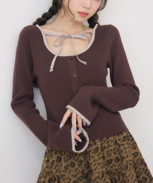 <チェックのアクセントが秋めくニットトップス>▼デザイン秋らしいチェック柄がパイピングされたニットアイテム。リブ素材になっているので、伸縮性も抜群で優しい着心地♪胸元はリボンになっていて、アクセサリーなしでも華やかにきまるアクセントデザインです◎▼コーディネートどんなボトムと合わせてもおしゃれ感溢れるデザインアイテム。インナー使いもできるシンプルデザインなので、1枚持っておけば重宝しそう♪------------------------------生地感:普通伸縮性:ある透け感:なし裏地:なし------------------------------▼ブランド紹介ems excite (エムズエキサイト)“more fun more cute”今をもっと楽しくもっと可愛くいたい女の子に向けたgirly cuteなブランド#カットソー #リボン #チェック #フレアスリーブ #ガーリー #チェック柄▼注意事項※撮影環境やモニター環境によって実際の商品とお色味が 多少異なってみえる場合がございます。品番:EF541511G003 / 品名:チェックパイピングNTPO