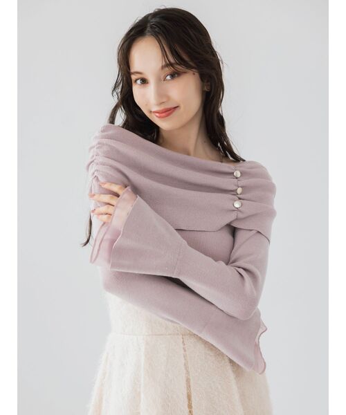 【商品】デコルテを美しく見せるオフショルデザインで、女性らしさを引き立てる一枚です。フロントにはギャザーとボタンディテールを施し、立体感とアクセントをプラスしながらボタンは控えめな光沢でエレガントに纏めました。【スタイリング】ボリュームスカート合わせでエレガントで大人っぽさのある表情に。ミニスカートも好相性です。【 お買いものにおすすめの便利機能! 】★商品のお気に入り登録完売カラーの再入荷時や、ラスト1点の時、セール開始時にお知らせします。★ブランドのお気に入り登録新商品や再入荷、セール情報など、いち早くブランドのお得な情報を受け取ることができます。ぜひご活用ください。