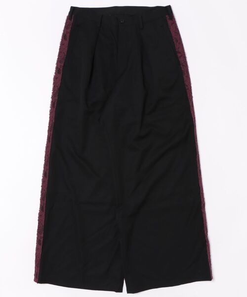 sulvam サイド部分にレースが配備されており、ブランドならではの世界観を味わっていただけます。 ウールギャバジンを使用しており、耐久性に優れ、ハリと光沢感が特徴的です。 sulvam ヨウジヤマモトでパタンナーとして活躍した藤田哲平が創業。 洋服は「人の一部となる物づくり」を根底に置いて制作。服作りの基本を外さない確固たるストラクチャーと、基本を熟知しているからこその柔軟な発想が同居するモードスタイルを発信する。 ブランド名は、ラテン語で即興演奏を意味する「Salvum」に由来する。ファッションに携わる全てのプロフェッショナル達が、バンドのジャムセッションのようにそれぞれのインスピレーションを具現化していくプロセスを表している。