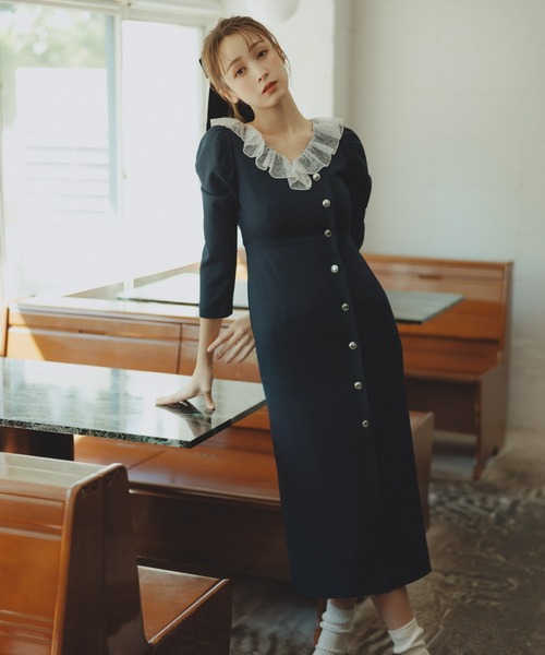 繊細なレースフリルがフェミニンな印象を与えるワンピース。ウエスト位置を高めに見せるデザインでスタイルアップ効果も魅力です。パンプスを合わせてお呼ばれにも、ブーツでカジュアルな印象にも仕上がる万能アイテムです。■fabric透け感[無し]裏地[一部有り]伸縮性[やや有り]生地の厚さ[普通]■design上品さとクラシックな雰囲気を兼ね備えたワンピース。襟にはレースをトリミングし、サイドにはボタンを配置し、クラシカルなデザインに仕上げました。程よくストレートなシルエットで、スタイルアップ効果も期待できます。フロントにはスリットを入れているため、足さばきがいいのも嬉しいポイントです。ディナーや集まりなどのちょっとしたイベントの時にもおすすめです。★《お気に入り登録》でお得な情報をGET★・「商品のお気に入り登録」で再入荷通知やラスト1の通知、セールやクーポンの通知も受け取ることができます!→ハートマークをクリック・「ブランドのお気に入り登録」で新商品や再入荷など、お得な情報を受け取ることができます!〇検索ワード〇かわいい ガーリー 推し活 参戦服 おでかけ デート 暖かい ゆったり 大人かわいい フェミニン シンプル 無地 フリル 配色 バイカラー クラシカル エレガント ぴったり 骨格 着心地 フレンチガーリー レース