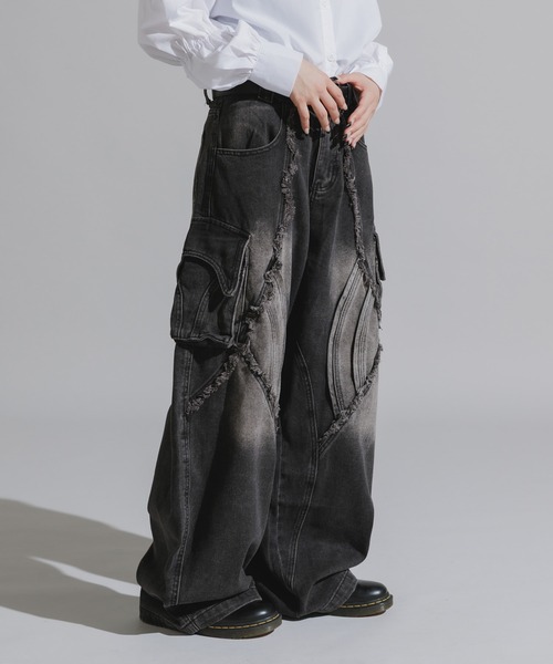独特にデザインされたパターンが異なるデニムパンツ 【ポイント】 ●カーゴポケットやバックポケット、オープンポケットを 備えており、収納力に優れています。 ●独特なパターンにフリンジデザインが施されており、 さりげないアクセントになります。 ●ベルトループは太めの設計で耐久力のある仕上がりです。 ●フロントはジッパーフライ仕様となっています。 ●ウォッシュ加工を施しており、柔らかく古着風の 仕上がりとなっています。 ●トレンド感のあるバギーシルエットになっています。 【おすすめコーディネート】 無地のスウェットやニットと合わせたパンツの 柄を際立たせるコーデがおすすめです。 パンツと揃えたオールデニムのセット アップスタイルもおすすめです。 【Chick/チック】 「Chickは、上品、おしゃれ。若い男性・女性。を意味しており、20代~30代をターゲットに、トレンドを取り入れた最新のファッションを手頃な価格で提供しています。手軽に最新のトレンドを取り入れられる場所としてエイジレスに提案していきます」。 【ROOPTOKYO ZOZOTOWN お買い物ガイド】 ▼商品をお気に入り登録! 完売商品の再入荷やラスト1点の通知、セール開始時にお知らせ! ▼"ROOPTOKYO(ループトーキョー)"をお気に入りブランドに登録! 新商品や再入荷など、ブランド最新情報をいち早くお知らせ! 是非、ご活用いただきお買い物をお楽しみください!ポリエステル100%