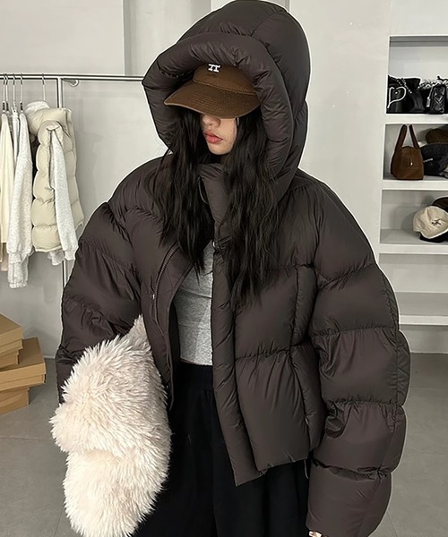 コンパクトに暖かく。シルエット自在の中綿ショートジャケット。■デザインフード付きでカジュアルな印象に仕上げた、中綿入りのショート丈ジャケット。裾にはドローストリングを施し、シルエットの調整が可能。丸みのあるフォルムとコンパクトな丈感が、バランスよく着こなせる一枚です。4サイズ展開で、自分にぴったりのフィット感が選べるのも嬉しいポイント。■素材軽量で扱いやすく、デイリーにぴったり。中綿入りでしっかりと暖かく、寒い季節の外出も快適に。マットな質感が上品さをプラスし、カジュアルすぎず大人っぽく着こなせます。■スタイリングハイウエストボトムやニットワンピースと合わせて、ショート丈を活かしたスタイルに。裾のドロストを絞って丸みのあるシルエットにすれば、トレンド感のある着こなしに。スニーカーやブーツとも好相性で、デイリーからお出かけまで幅広く活躍します。-----------------透け感:なし伸縮性:なし裏地:あり-----------------【スタッフが着用しました!】身長:158cm普段着用サイズ:S~Mサイズ今回着用サイズ:FREEサイズ■着用感中綿入りでしっかり暖かく、軽やかな着心地。裾のドロストでシルエットを調整できるため、気分やコーデに合わせてアレンジ自在。4サイズ展開で、ジャストサイズでもオーバーサイズでも楽しめる万能アウターです。-----------------------------------------------【お買い物をよりお楽しみいただく為に】▼お気に入り登録サイズ・カラーを指定して、♡マークをクリック![セール通知・ラスト1点の通知・完売アイテムの再入荷通知]を受け取ることができます。▼ブランドのお気に入り登録新商品や再入荷、タイムセールやクーポン等いち早くブランドのお得な情報を受け取ることができます。-----------------------------------------------※取り扱い上のご注意染色の特性上、発汗や摩擦により色落ちしたり他のものに色移りすることがありますのでご注意ください。韓国 オフィスカジュアルガーリー大人カジュアル韓国ファッション秋服冬服