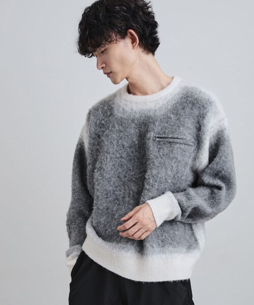 【素材】 毛足の長い起毛素材です。 モヘヤライクなあたたかみのある素材です。 【デザイン】 起毛することで柄の境目が曖昧になる特徴を活かし、3色の同系色の糸を使用しグラデーションカラーを表現しています。 中心になるほどに色の濃くなる特徴的なグラデーションは個性的なデザイン。 胸にはシルバーZIPのポケットを配すことで、ラグジュアリー感をプラスしました。 【仕様】 ・ポケット数:胸元×1 ■こちらの商品はtk.TAKEO KIKUCHI店舗では取り扱いがございませんのでお問い合わせはコールセンターまで。 【推奨サイズ】 02サイズ(M):165~175cm 03サイズ(L):170~180cm 04サイズ(XL):175~185cm ※標準体型を基にした目安になります。 - BRAND CONCEPT - 時代を超えて支持されるトラディショナルなアイテムをベースに、アソビ心とストリートの自由な発想を取り入れ、日本独自のミックススタイルを提案します。 【気になる商品はお気に入り登録をおススメ】 ▼商品のお気に入り登録 完売しているカラーの再入荷通知や、ラスト1点、セールの通知をお知らせいたします。 ▼ブランドのお気に入り登録 新商品や再入荷など、いち早くブランドの情報を受け取ることができます。 ※照明の関係により、実際よりも色味が違って見える場合があります。また、パソコン・スマートフォンなどの環境により、若干製品と画像のカラーが異なる場合もございます。 モデル情報:身長185cm B90 W72 H91 着用サイズ:03(L) 店舗へのお問い合わせ商品番号:C01-14168 ●製品寸法: 02(M):着丈66cm B112cm 袖丈56cm 肩幅54cm 03(L):着丈68cm B118cm 袖丈58cm 肩幅56cm 04(LL):着丈70cm B124cm 袖丈59cm 肩幅58cm 備考: