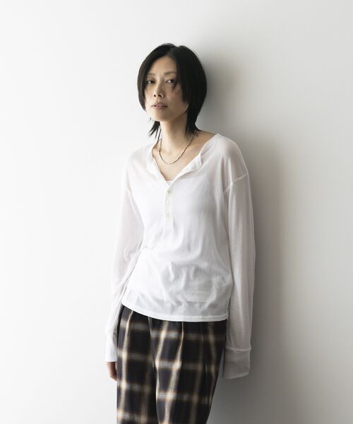 1枚着はもちろん、レイヤードスタイルまで幅広く楽しめるデザインプルオーバー。ややゆったりとしたシルエットとシアー素材でスタイリングにこなれ感を演出します。ヘンリーネックがデコルテラインをきれいに見せつつ、カジュアルなアクセントをプラス。これからの季節から肌寒くなる秋口までロングシーズン活躍してくれるおすすめのアイテムです。透け感[ややあり]生地の厚さ[薄手]光沢感[なし]伸縮性[あり]裏地[なし]ポケット[なし]※モデル着用画像は、光の当たり具合で色味が違って見える場合がございます。※お使いのモニター環境によって商品の色味が違って見える場合がございます。▼ 気になった商品はお気に入り登録がおすすめ ▼商品ページ内の ♡ ハートマークをクリックしてお気に入り登録しておけば、 他アイテムとの比較やお値下げのチェックも楽に行えます!ぜひ、お買い物する際にご活用下さい。■GARAGE OF GOOD CLOTHING(ガレージ オブ グッド クロージング)ブランドコンセプトは「Whim woman~気まぐれな女性~」ハイブランドもデニムも、古着も、ベーシックもメンズだって着てみたい。そんな自由なファッションを楽しみたい女性の心を満たせるSHOPです。