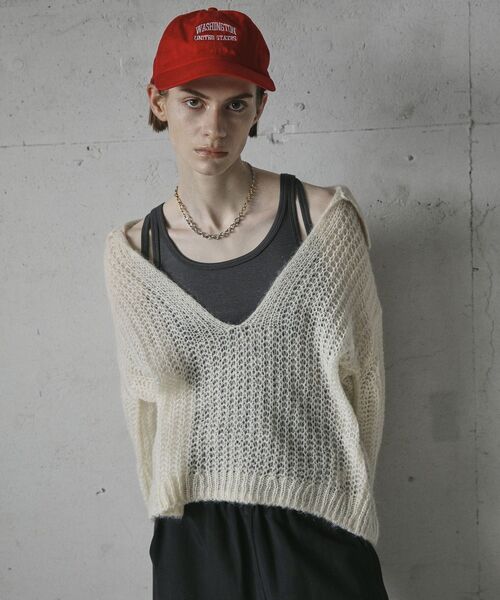 モヘア調の柔らかなニット素材で仕立てた襟付きシアープルオーバー。ゆったりとしたオーバー感に大胆に開いたVネックラインが特徴的なデザインです。タンクトップやカットソーなどインナーの合わせ方次第で様々な着こなしが楽しめる万能アイテム。軽やかなシアー感がトレンドライクな着こなしを盛り上げるおすすめの一枚です。透け感[ややあり]生地の厚さ[普通]光沢感[なし]伸縮性[あり]裏地[なし]ポケット[なし]※モデル着用画像は、光の当たり具合で色味が違って見える場合がございます。※お使いのモニター環境によって商品の色味が違って見える場合がございます。▼ 気になった商品はお気に入り登録がおすすめ ▼商品ページ内の ♡ ハートマークをクリックしてお気に入り登録しておけば、 他アイテムとの比較やお値下げのチェックも楽に行えます!ぜひ、お買い物する際にご活用下さい。■GARAGE OF GOOD CLOTHING(ガレージ オブ グッド クロージング)ブランドコンセプトは「Dig new you.」ー掘り出しものは、あたらしい自分ーいつだって、自分らしくありたい。いつだって、変化しつづけたい。自分らしさは決めつけない。感覚を信じて、選びとって。最良の自分を更新しつづけていく。