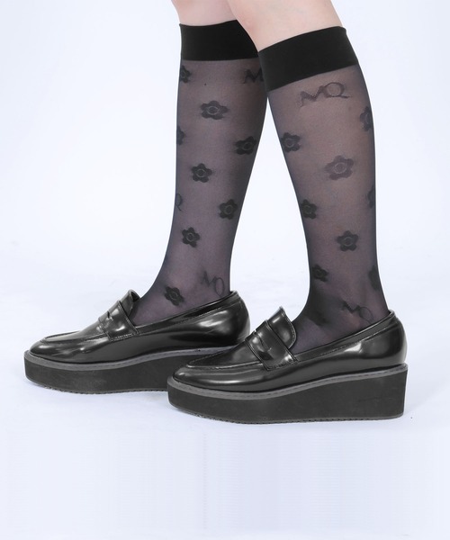 MQロゴを組み合わせたデイジー総柄のソックス。 ◆ポイント・シアーでストッキングに近い使用感(25デニール相当)・東レの高透明ナイロン長繊維を使用※編んだ生地の透明感を追求した糸で脚をきれいに見せる効果が期待できます。 ◆コーディネートミニ丈のスカートでデイジー総柄を見せるスタイリングがおすすめです。